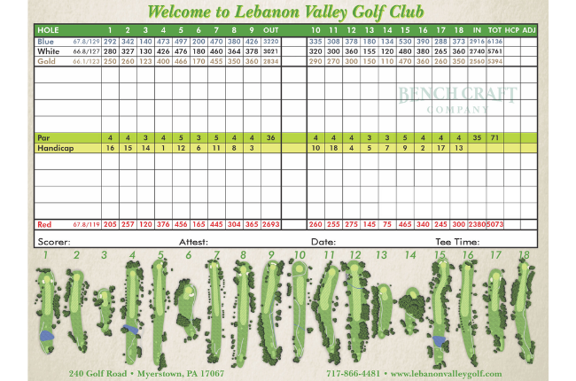 The winning bidder of this lot will receive a certificate for a FREE round of golf for up to four (4) players at the Lebanon Valley Golf Course. (Cart rental is not included). ABOUT THE COURSE: At Lebanon Valley, you'll find a terrific, well-maintained golf course that has been around since 1950. The 18 hole championship design features 6,236 yards of golf from the longest tees, over beautiful rolling terrain, playing to a par of 71. The course rating is 67.8 and it has a slope rating of 129. The distinctive, small elevated greens are known for their quick putting surfaces. Located conveniently off Route 501 in Myerstown, just a half-mile from Route 422 and only 7 miles from Interstate 78. It's an easy commute for golfers from Lancaster, Lebanon, Harrisburg & Reading, Pennsylvania.