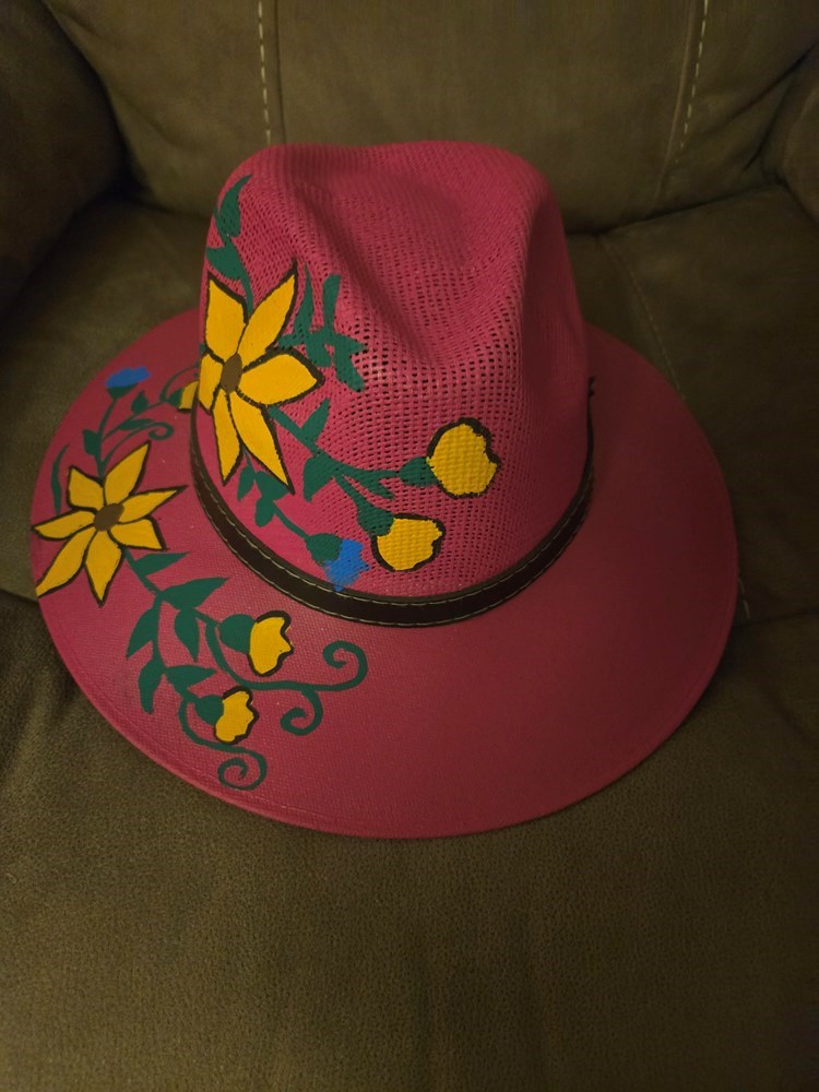 Hand Painted Hat from Mexico and Fossil Earrings with Citrine accents